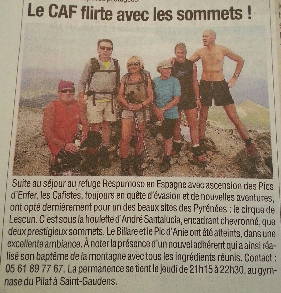 Toute l'équipe du CAF Comminges souhaite un bel été (en montagne bien sûr) à ses grimpeurs et leur donne rendez-vous à la rentrée pour une saison encore pleine de surprises.